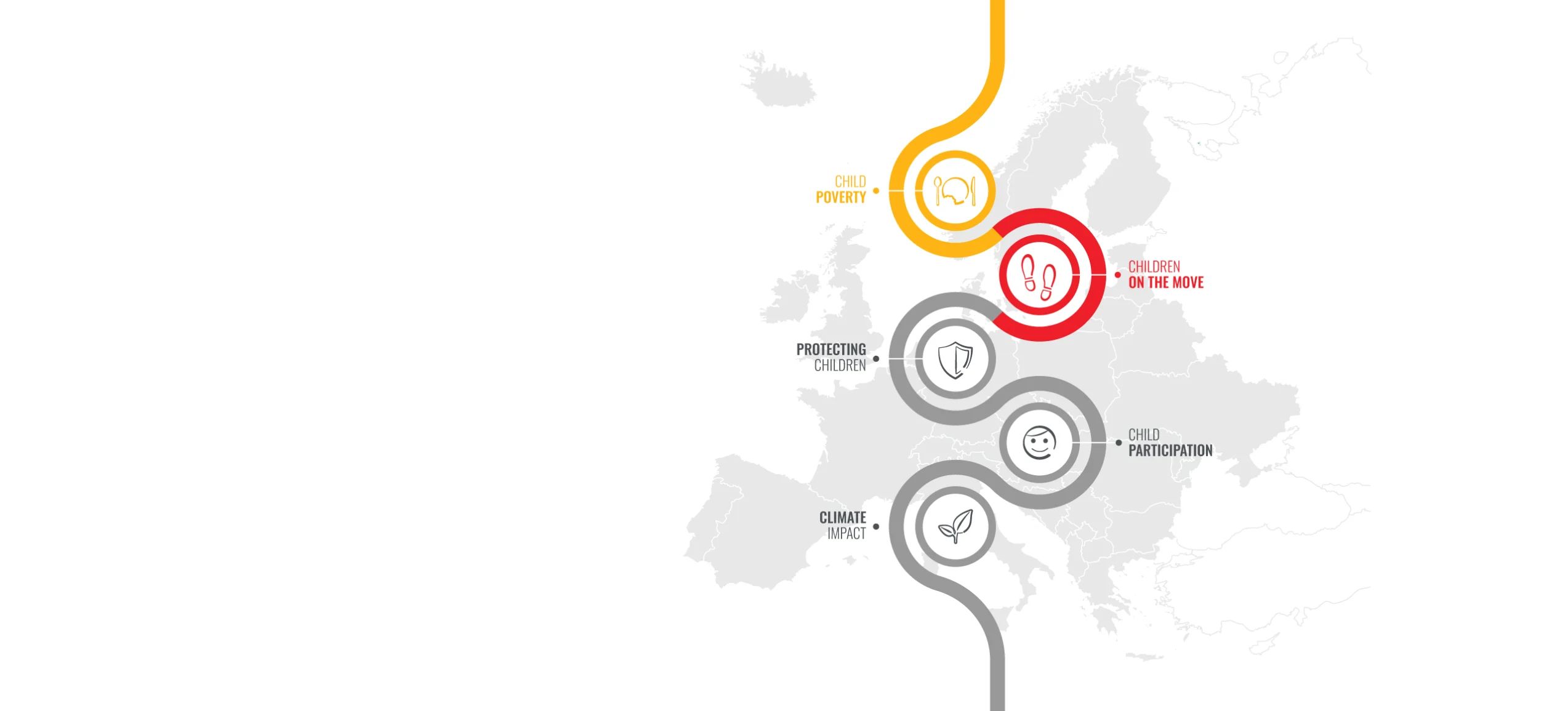 As Save the Children works across Europe to protect and promote the rights of children, especially those in vulnerable situations, we focus our efforts in five main thematic areas that affect children’s lives: