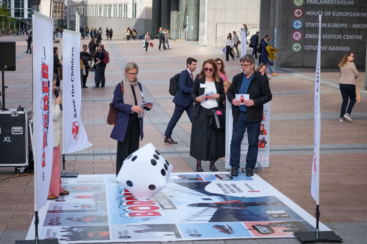 To raise awareness about the harsh realities faced by children at European borders, we launched the 'Border Game: Not A Child's Play'—a life-sized board game simulating the journey of children on the move—outside the European Parliament. The event attracted enthusiastic participation from Members of the European Parliament, European Commission officials, civil society organisations, young people, and the public, generating meaningful dialogue and engagement.